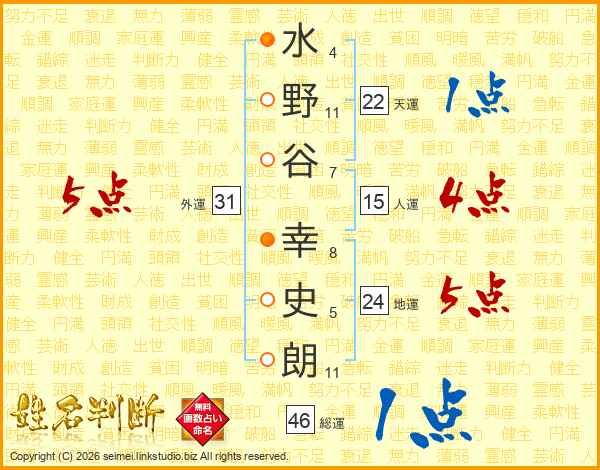 水野谷幸史朗さんの総運は46画の1点!