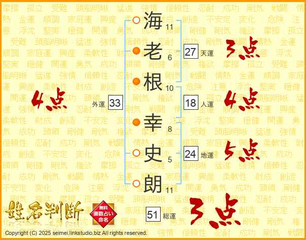 海老根幸史朗さんの天運は27画の3点!
