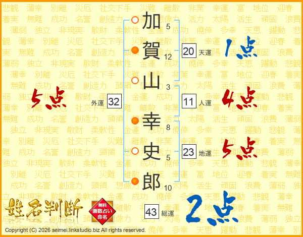 加賀山幸史郎さんの総運は43画の2点!