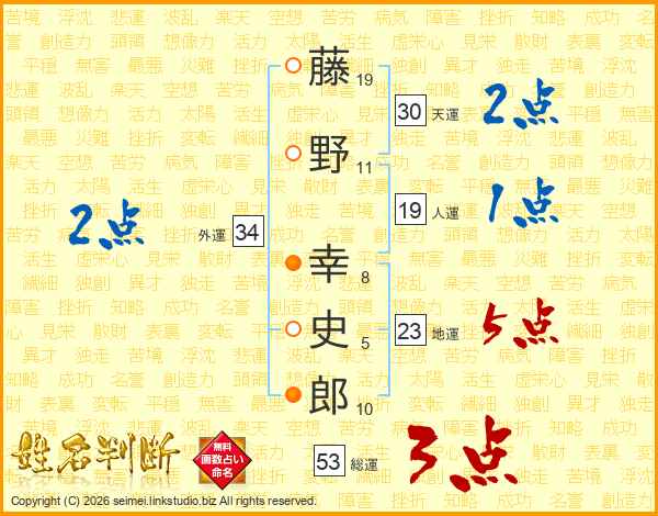 藤野幸史郎さんの天運は30画の2点!
