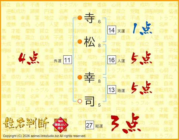 寺(6画)松(8画) 幸(8画)司(5画)