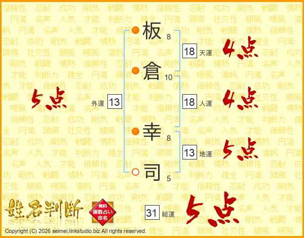 板倉幸司さんの総運は31画の5点!