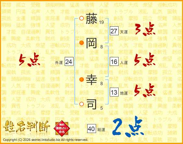 藤(19画)岡(8画) 幸(8画)司(5画)