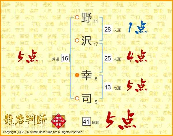 野沢幸司さんの総運は41画の5点!