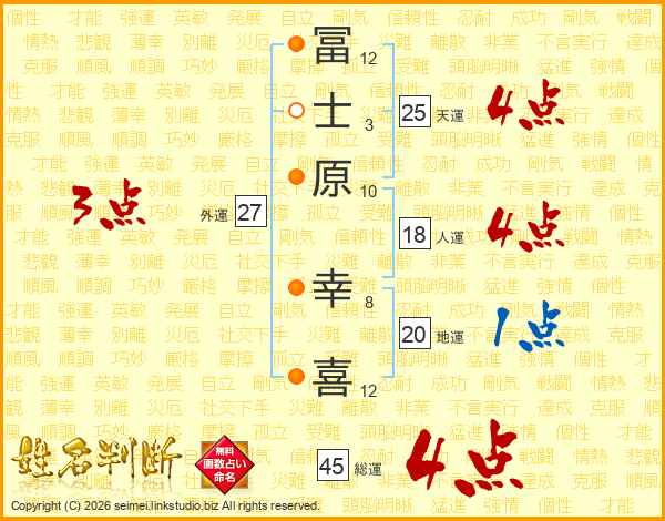 冨士原幸喜さんの天運は25画の4点!