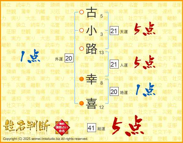 古(5画)小(3画)路(13画) 幸(8画)喜(12画)