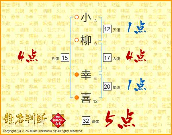 小柳幸喜さんの総運は32画の5点!