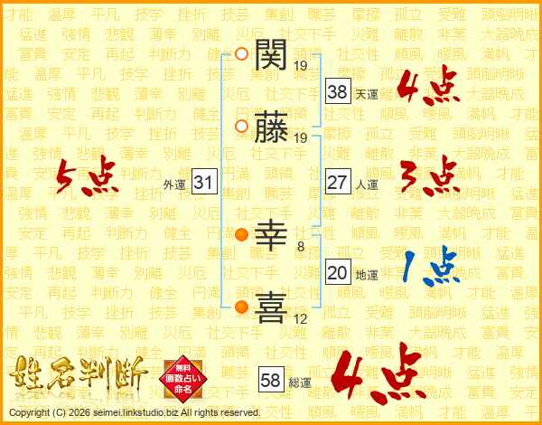 関藤幸喜さんの天運は38画の4点!