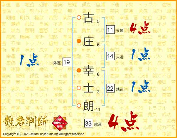 古庄幸士朗さんの総運は33画の4点!