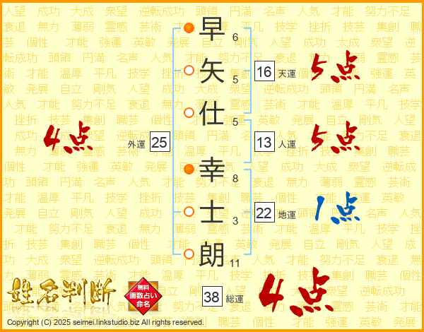 早(6画)矢(5画)仕(5画) 幸(8画)士(3画)朗(11画)