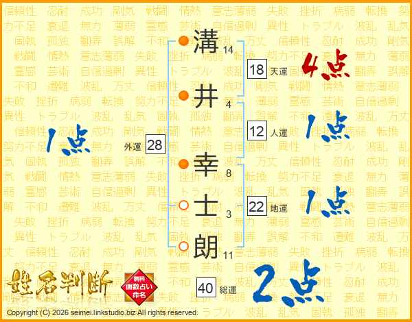 溝井幸士朗さんの天運は18画の4点!