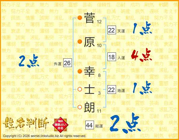 菅原幸士朗さんの総運は44画の2点!