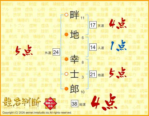 畔(11画)地(6画) 幸(8画)士(3画)郎(10画)