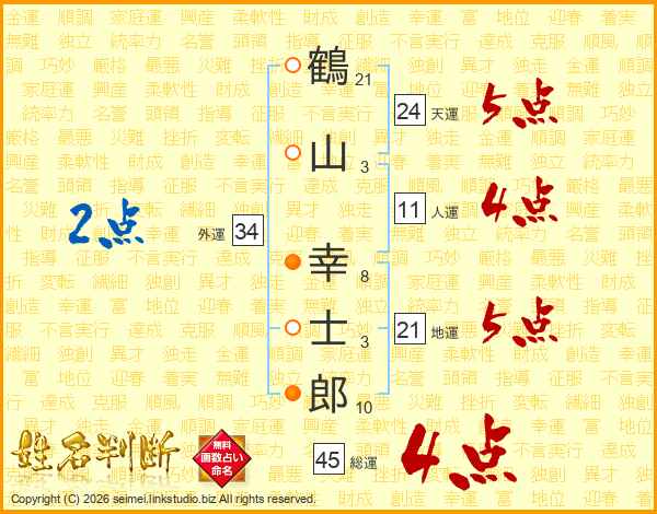 鶴山幸士郎さんの総運は45画の4点!