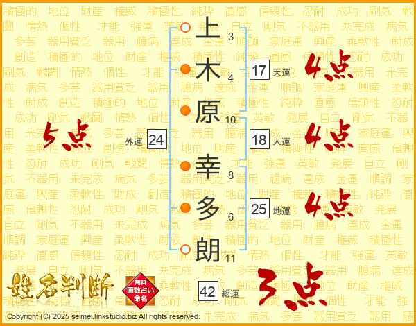 上木原幸多朗さんの地運は25画の4点!