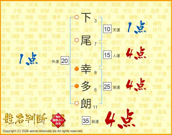 下尾幸多朗さんの総運は35画の4点!