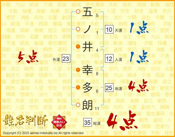 五(5画)ノ(1画)井(4画) 幸(8画)多(6画)朗(11画)