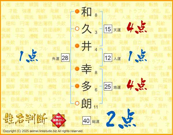 和(8画)久(3画)井(4画) 幸(8画)多(6画)朗(11画)