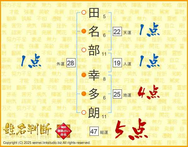 田名部幸多朗さんの総運は47画の5点!