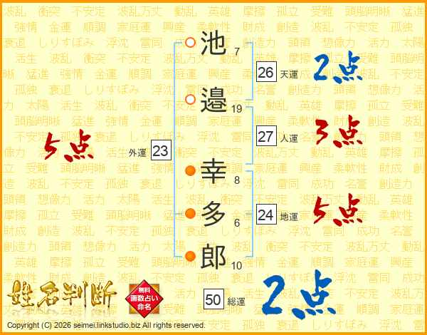 池邉幸多郎さんの天運は26画の2点!