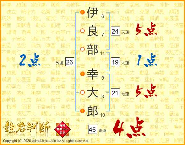 伊良部幸大郎さんの総運は45画の4点!