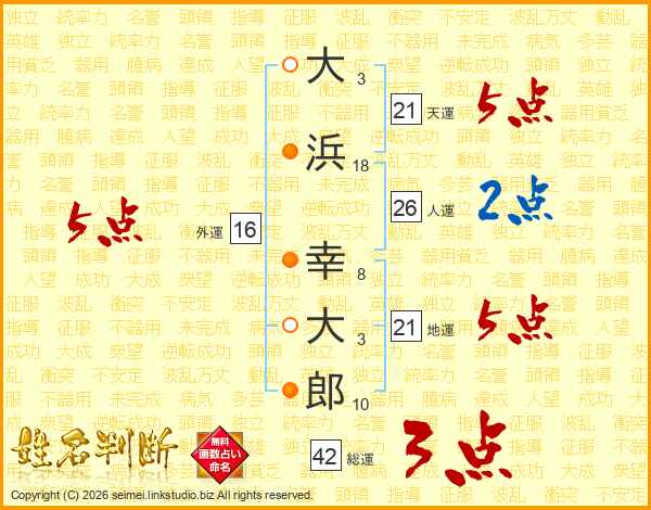 大浜幸大郎さんの人運は26画の2点!