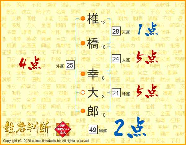 椎橋幸大郎さんの人運は24画の5点!