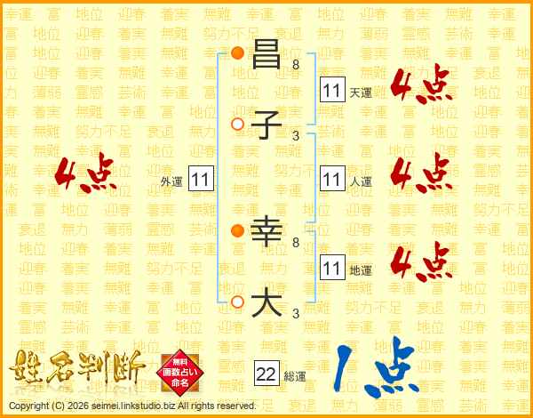 昌(8画)子(3画) 幸(8画)大(3画)