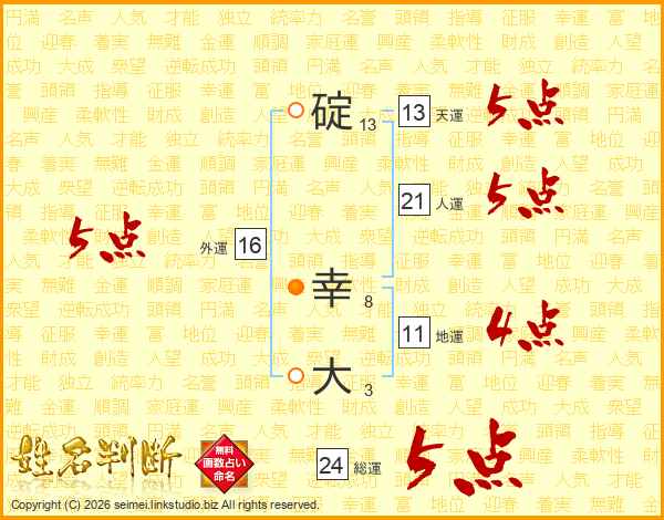 碇幸大さんの人運は21画の5点!