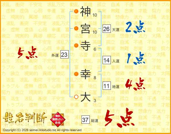 神宮寺幸大さんの総運は37画の5点!