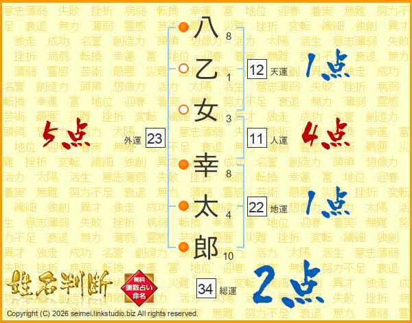八乙女幸太郎さんの総運は34画の2点!