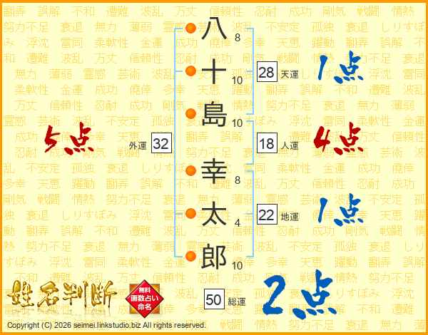 八十島幸太郎さんの外運は32画の5点!