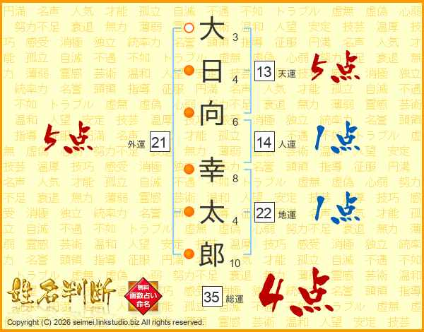 大日向幸太郎さんの総運は35画の4点!