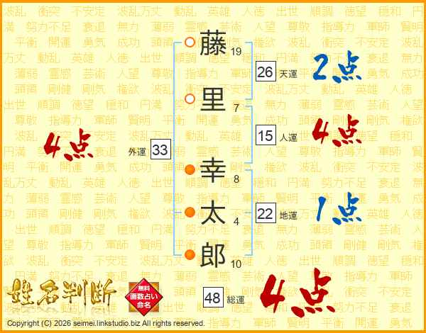 藤里幸太郎さんの外運は33画の4点!