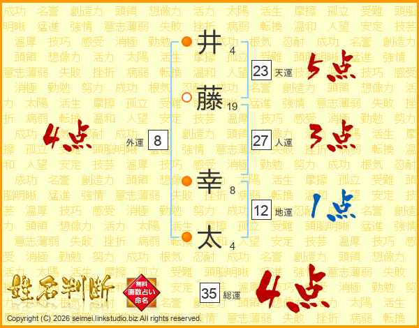 井(4画)藤(19画) 幸(8画)太(4画)