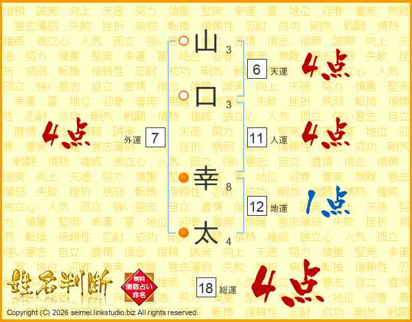 山口幸太さんの総運は18画の4点!