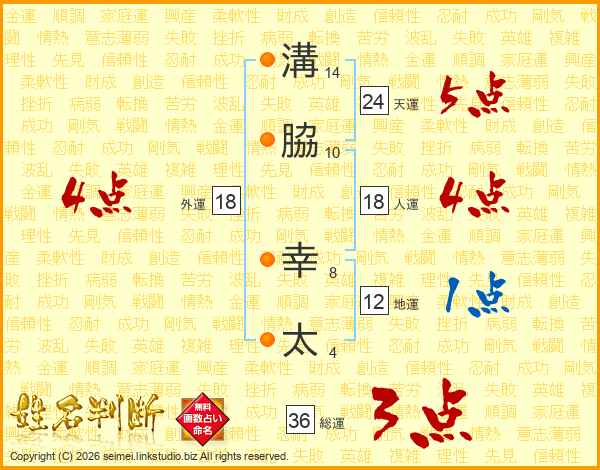 溝脇幸太さんの天運は24画の5点!