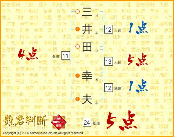 三(3画)井(4画)田(5画) 幸(8画)夫(4画)