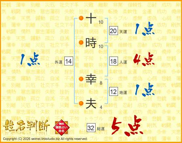 十時幸夫さんの総運は32画の5点!