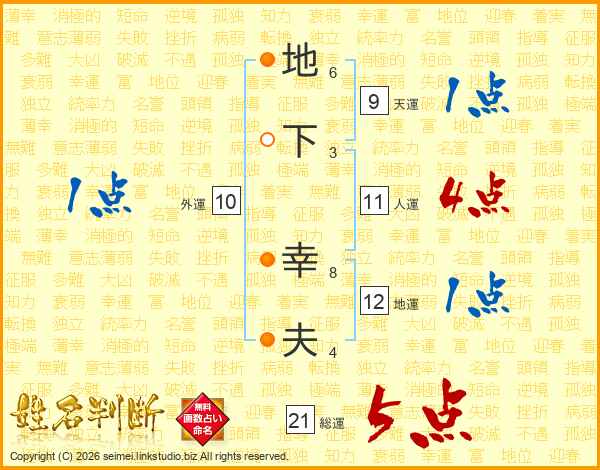地下幸夫さんの総運は21画の5点!