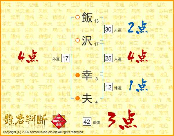飯沢幸夫さんの人運は25画の4点!