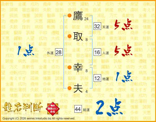 鷹取幸夫さんの総運は44画の2点!