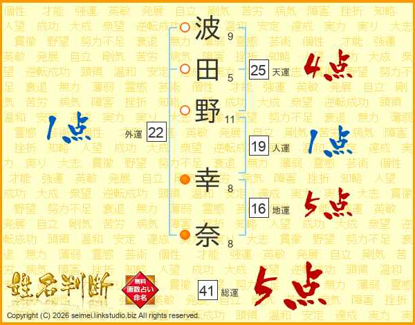 波田野幸奈さんの総運は41画の5点!