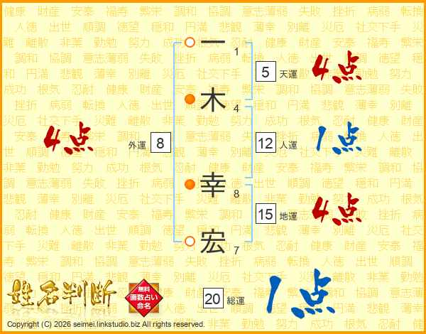 一(1画)木(4画) 幸(8画)宏(7画)