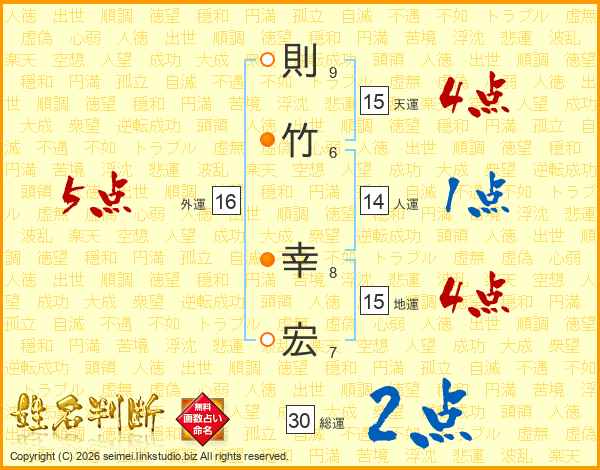 則竹幸宏さんの天運は15画の4点!