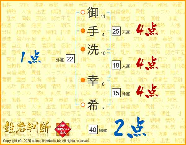 御手洗幸希さんの天運は25画の4点!
