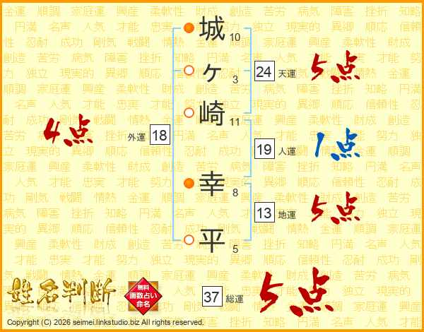 城ヶ崎幸平さんの総運は37画の5点!