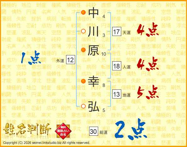 中川原幸弘さんの人運は18画の4点!