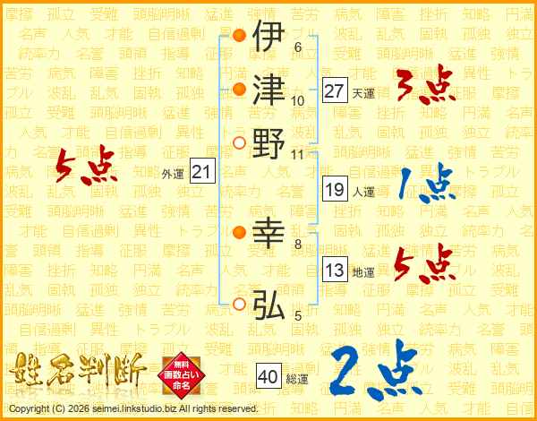 伊津野幸弘さんの天運は27画の3点!