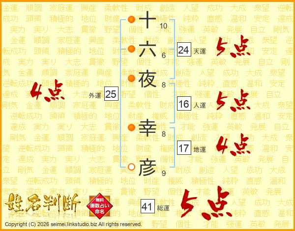 十六夜幸彦さんの総運は41画の5点!